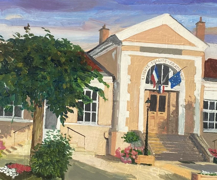Chaque tableau commence ainsi : un lieu m’appelle. Ensuite, je construis : cadrage, dessin, choix des couleurs. Je peins à l’huile, souvent, pour la richesse des nuances et la profondeur. Tout est pensé, mais rien n’est figé — je travaille avec mes yeux, bien sûr, mais aussi avec l’intuition.