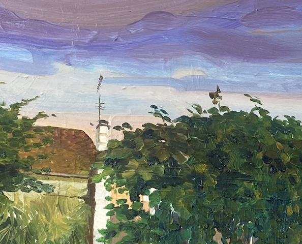 Un paysage familier devenu tableau onirique, entre souvenir intime et rêverie lumineuse.